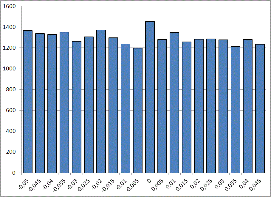 Например, значение 0 – сумма участков с явкой 50%-50,4999%, 60%-60,4999%, 70%-70,4999%, 80%-80,4999% и 90%-90,4999%, которых в результате оказалось более 1400, а -0,05 - сумма участков с явкой 49,5%-49,9999%, 59,5%-59,9999%, 69,5%-69,9999%, 79,5%-79,9999% и 89,5%-89,9999%, которых в результате оказалось менее 1200.